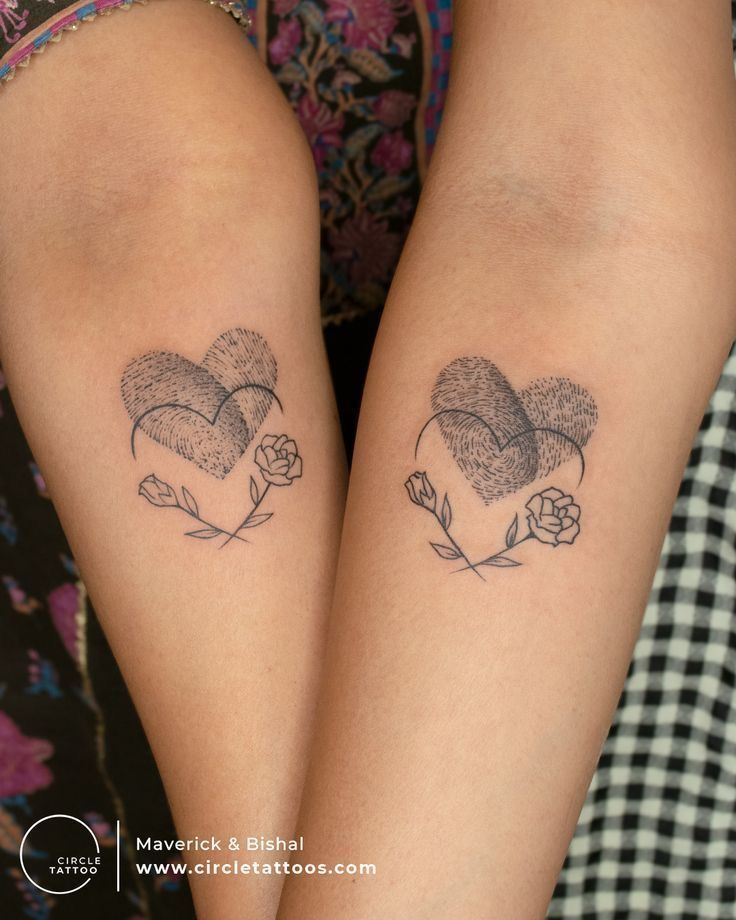 21. Matching Rose Fingerprint Heart Tattoos