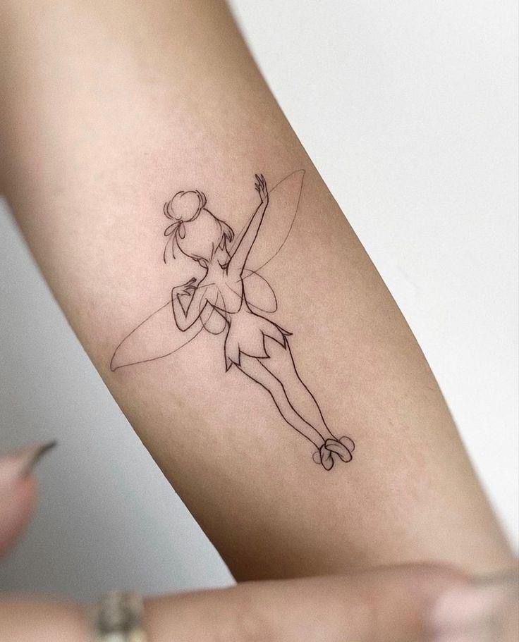 There’s something beautifully nostalgic about a simple line-drawn fairy. It feels like a tiny secret from childhood—light, magical, and quietly rebellious in the most charming way. For a first tattoo, this kind of design says you still believe in a little bit of wonder, even as a grown, confident adult. It’s soft, feminine, and effortlessly Cute without trying too hard.