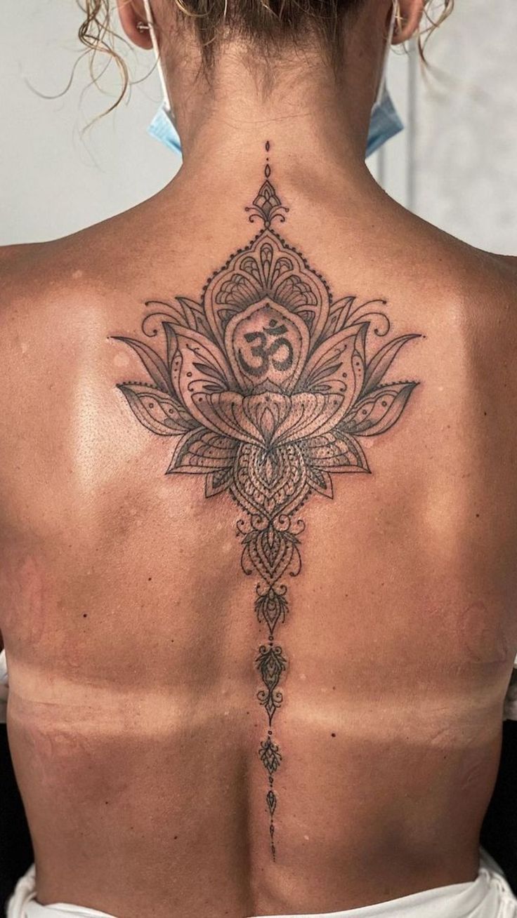 If you are looking for flower spine tattoo ideas that feel symbolic as well as beautiful, this is a stunning direction to consider. It works especially well for women who love design with structure, balance, and a little sacred energy rather than a loose Wild floral layout. Because the details are so important here, your artist should create a very clean stencil and have strong experience with ornamental linework, not just petals alone. Compared with a simple Fine line bloom, this tattoo gives more impact and a more spiritual vibe while still keeping that elegant spine focus. It is a gorgeous option for anyone who wants a floral piece that feels dainty in spirit but strong in meaning.