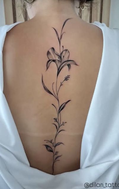 Compared with fuller flower spine tattoo ideas, this one gives you a more minimalist, fine-line effect while still keeping that unmistakable vertical spine focus. It is ideal if you love a simple design or want something that feels almost like a guide for future additions later on. The beauty here is restraint, so the line quality has to be excellent. A good artist will treat it more like a clean drawing than a decorative filler piece, and that is exactly what makes it feel so polished and timeless.