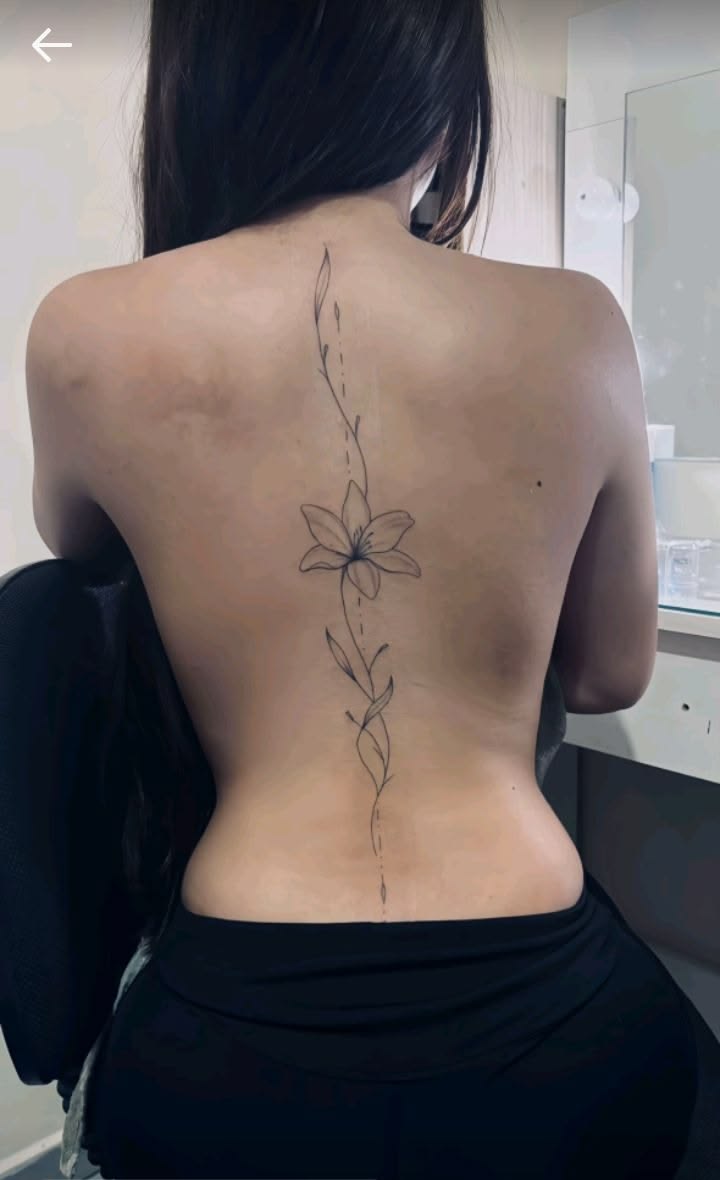 This is one of those simple flower spine tattoo ideas that works beautifully for someone wanting a first tattoo or a more dainty look. The Fine line style keeps the whole design refined, and the vertical placement naturally flatters the back without needing extra detail. Ask your artist for a well-balanced stencil and delicate tapering so the stem stays fluid from top to bottom. A Lily-inspired piece like this also gives you room to add more later, but honestly, it is gorgeous exactly as it is.