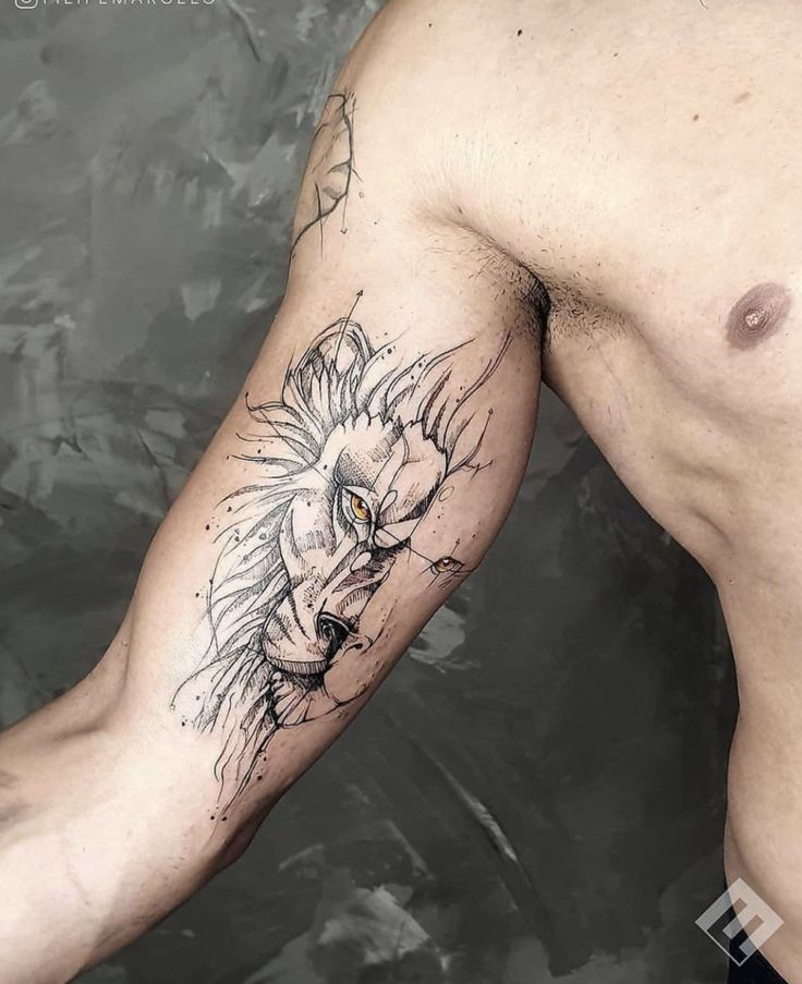 24. Abstract Lion Inner Bicep Tattoo