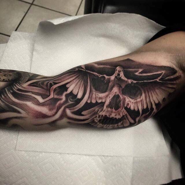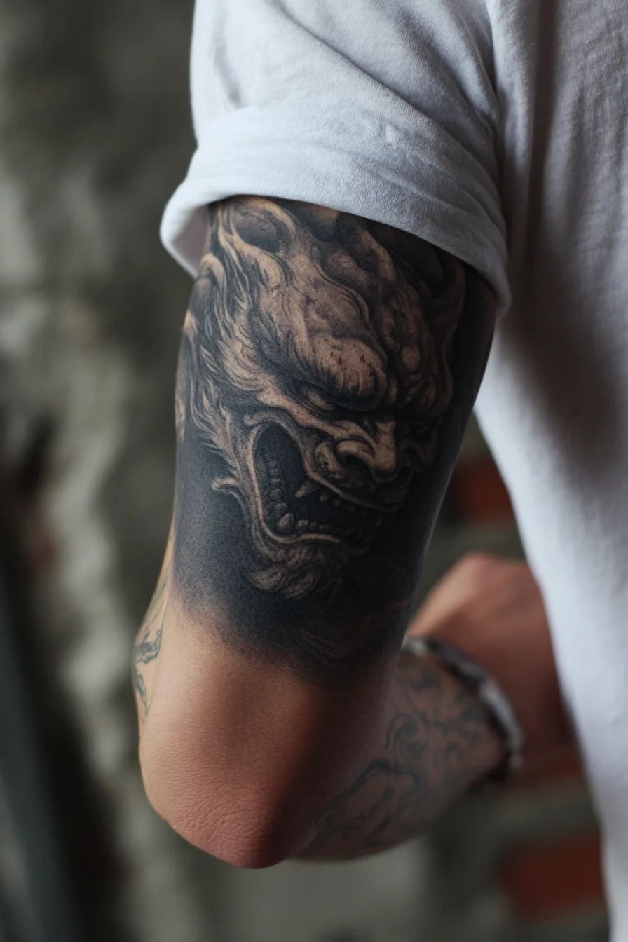 This design gives off a bold, fearless vibe. It’s best for men who lean into darker aesthetics and want something that feels powerful and private. The heavy black shading makes it striking while keeping the focus tight and contained on the inner bicep.