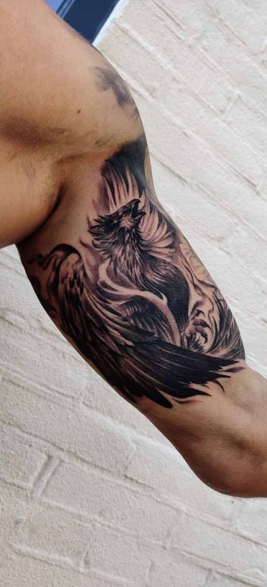 19. Phoenix Inner Bicep Tattoo