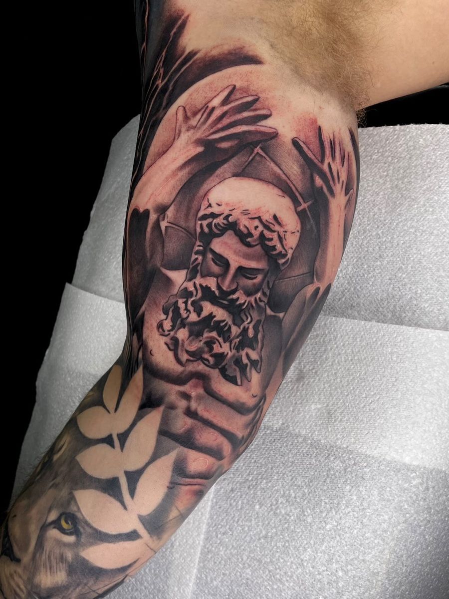 For men drawn to Greek mythology, this design stands out as deeply symbolic. It suits those who see tattoos as reflections of life experience rather than decoration. The black and grey realism gives it a timeless quality that ages beautifully.