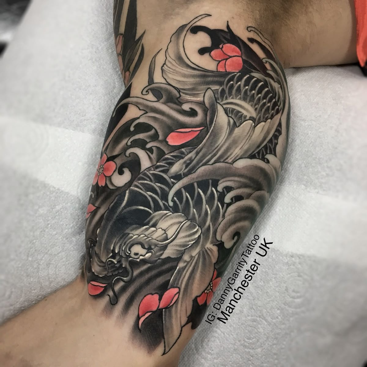 Perfect for men drawn to Japanese tattoo traditions, this piece works best for those considering ideas for half sleeves or a future sleeve. The flow of the design complements the inner bicep naturally, making it both visually striking and deeply symbolic.
