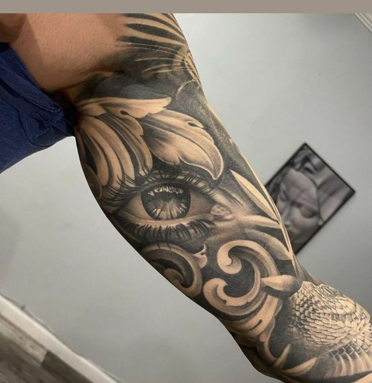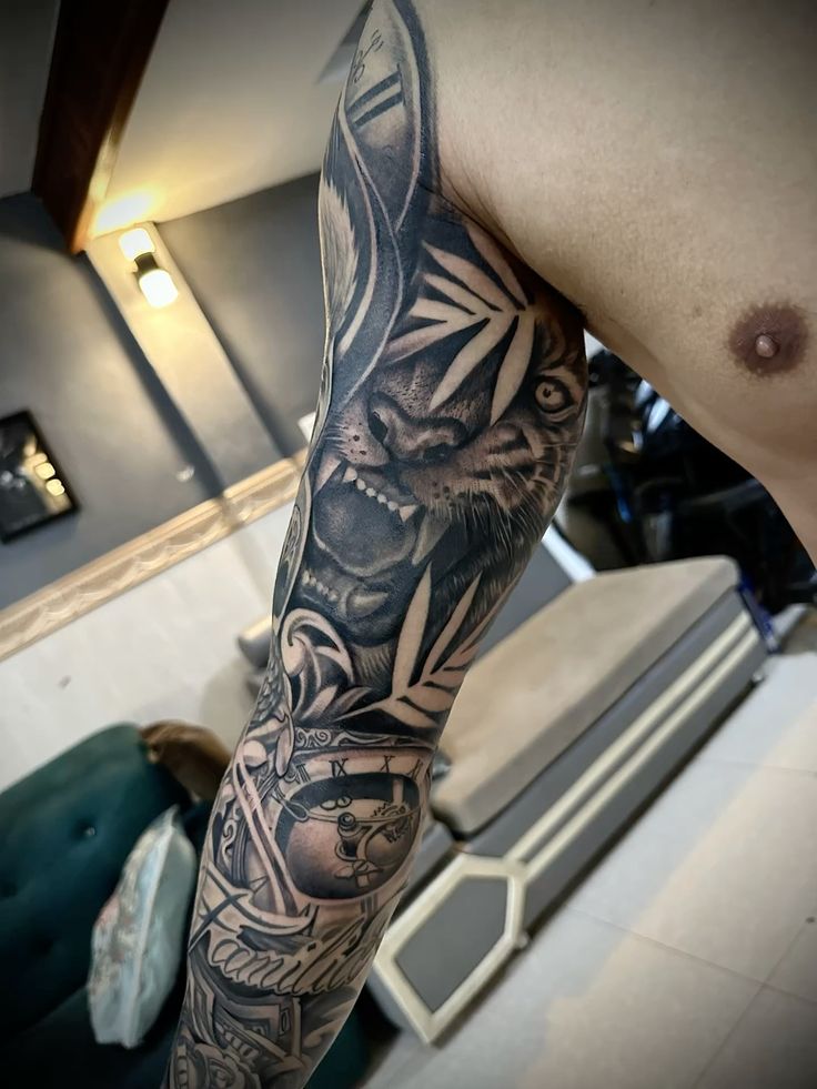This design works best for men considering ideas for half sleeves or a larger sleeve composition. It’s ideal if you want something dramatic that blends animal symbolism with deeper meaning. The flow suits muscular arms particularly well.