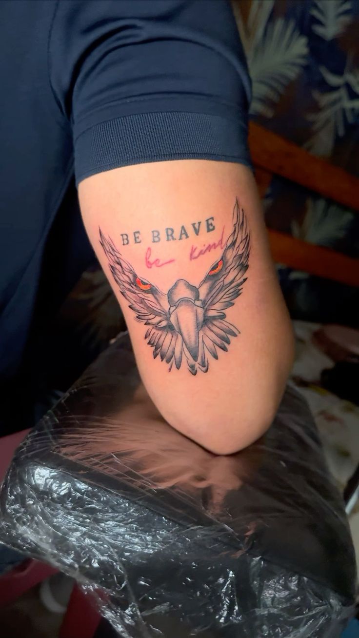 17. “Be Brave Be Kind” Inner Bicep Tattoo