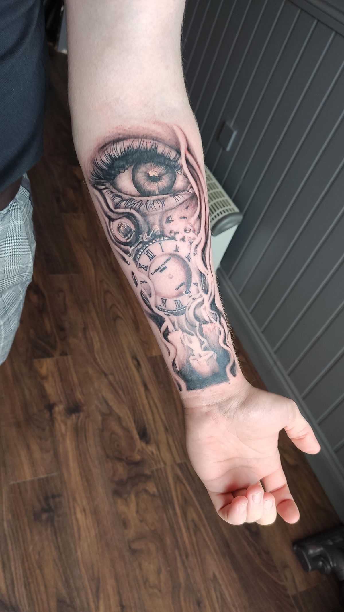 In 2025, surreal realism is having a serious moment—especially pieces that blend emotional symbols (like an eye) with mechanical elements (like time). This works well for men and for women who love bold black and gray. Ask for high contrast in the eye details so they stay sharp, and keep the softer smoky shading around them light enough that it doesn’t turn muddy later. If you’re building toward men’s half sleeves, this can be a killer centerpiece that connects to other realism elements easily.
