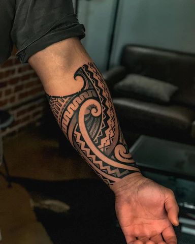 24. Tribal Forearm Pattern for a Clean Men’s Sleeve Look