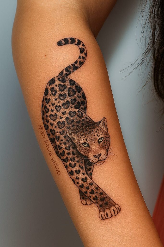 The emotional impact of such a tattoo can be huge. Every time you notice it staring back at you in the mirror when you are wearing a tank top or sports bra, it serves as a reminder that you get to take up space, that you get to be strong and beautiful simultaneously. Such an arm tattoo can be your quiet shield if you are dealing with a new career, new location, or new life and are searching for jaguar tattoo design ideas as part of your personal milestone achievement. The whole tattoo can be paired with some delicate accessories and monochromatic clothing, thereby allowing your tattoo to be that statement accessory you so desperately need.