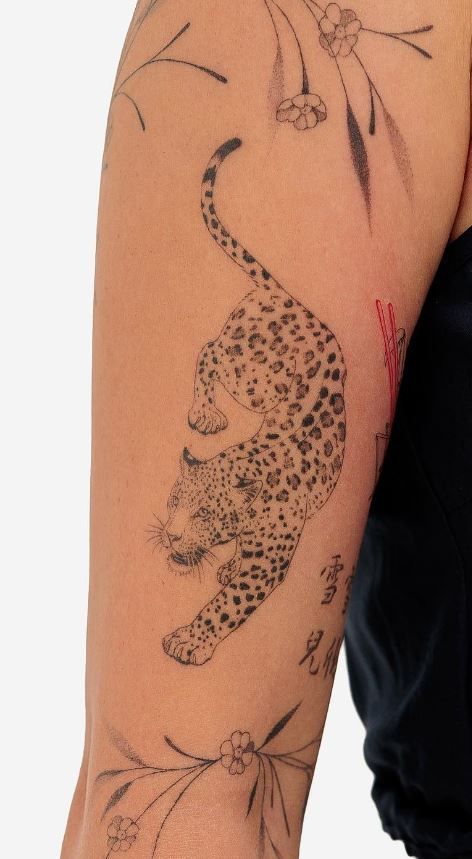 The style this tattoo exudes is uncompromisingly strong and fashion-forward, particularly when worked down an arm from shoulder to wrist or from elbow to ankle. It pairs wonderfully with monochromatic fashion and pictures stunningly alongside metal accessories, such as necklace chains or a sporty watch. Not only does your edgy style get paired with your romantic side, but this is one harmonious blend. This tattoo can be paired with your favorite Neotraditional designs, geometric designs, and even an entire backpiece designed after Aztec Guerrero legends, with this inked floral jaguar serving as the centerpiece of your entire tattoo collection.