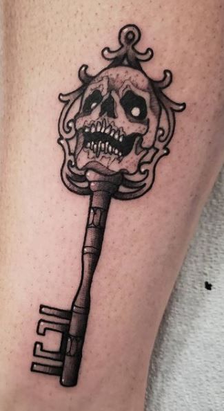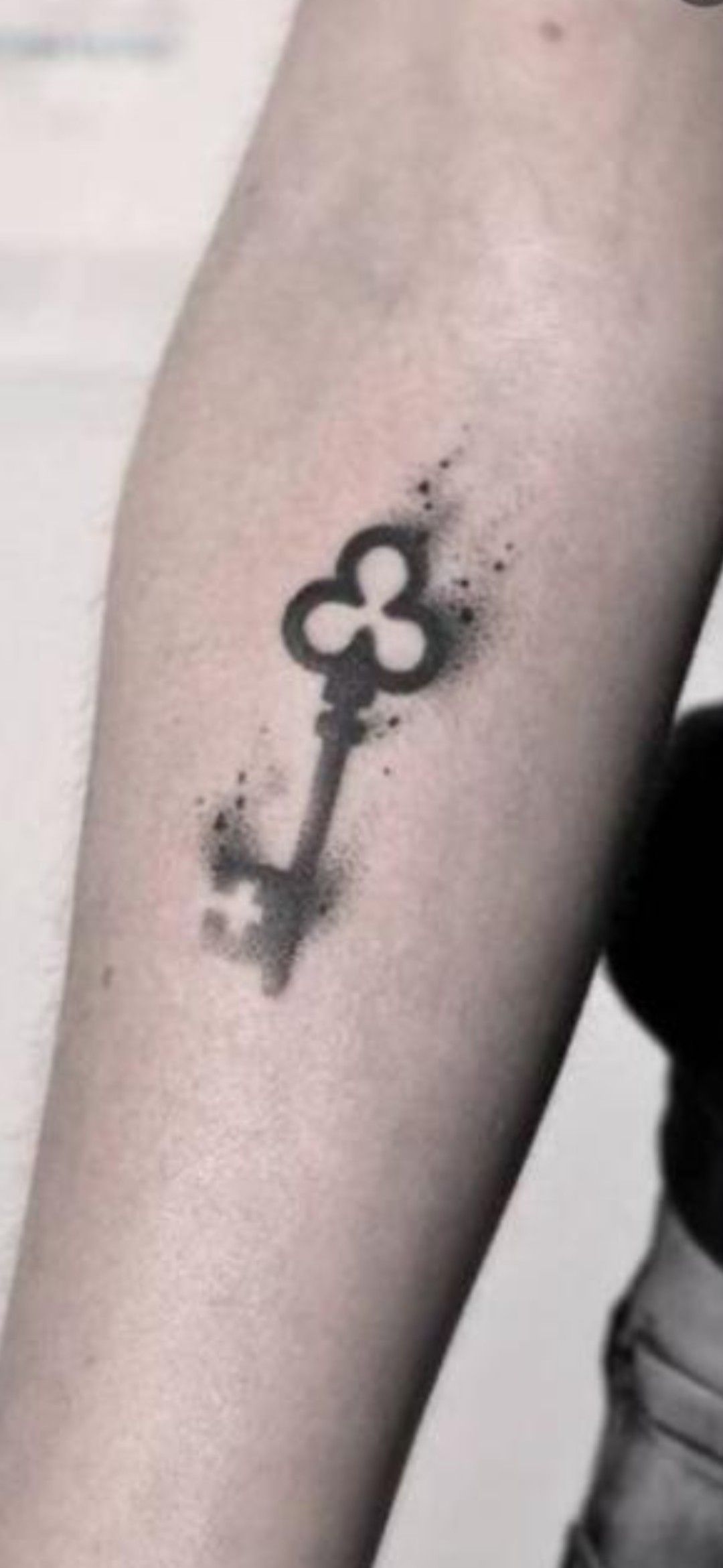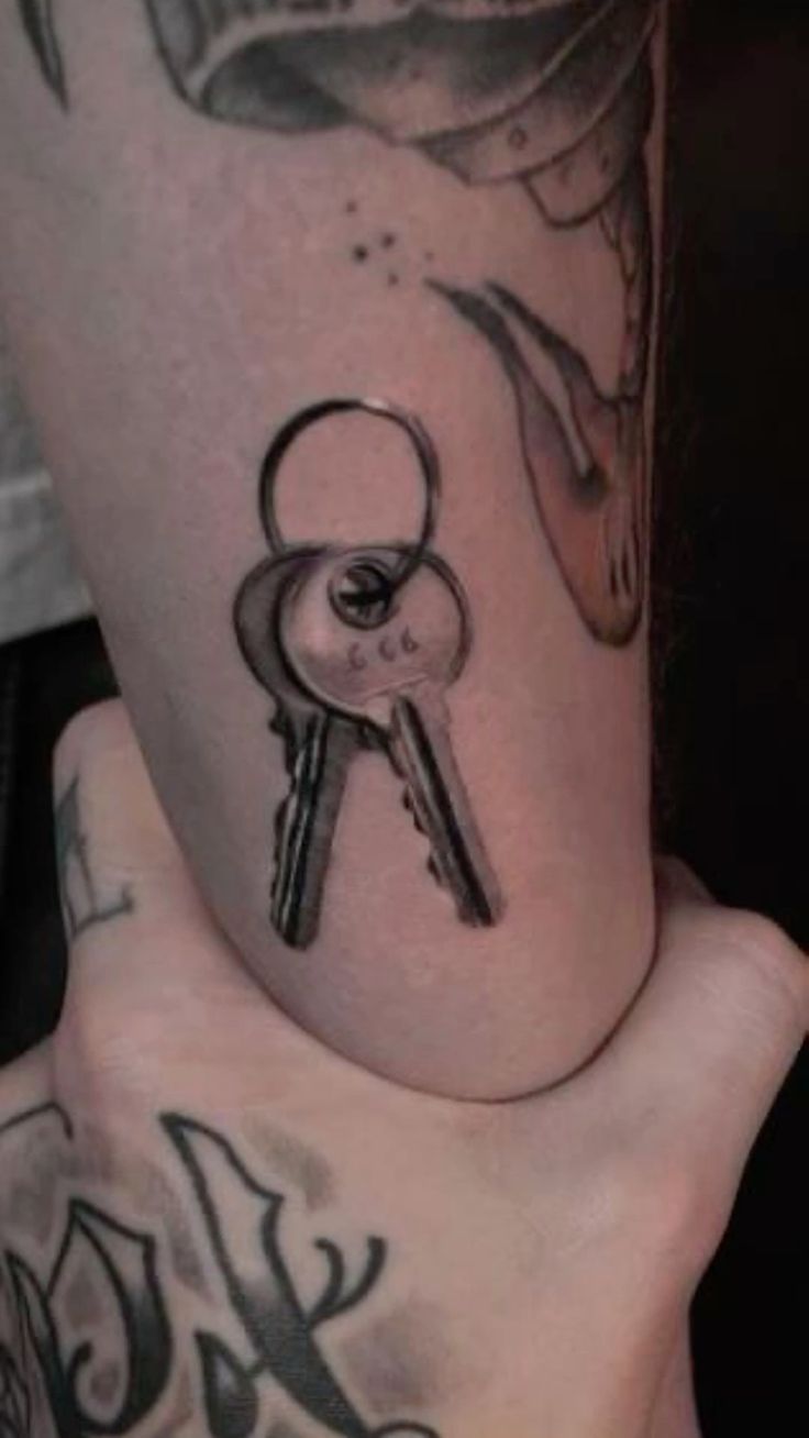 This one feels mysterious in such a modern, understated way. At first glance, it’s just a small key, but that smoky, sprayed effect around it gives the tattoo a softer edge and a little bit of mood. It almost looks like the symbol appeared out of nowhere, which makes it feel more emotional and artistic than a standard outline design. If you love minimalist tattoos but want something with a touch more atmosphere, this is a really cool direction. It has that elusive, almost dreamlike quality that keeps a simple image from feeling plain. Among key tattoo ideas, this one feels stripped back, stylish, and quietly expressive.