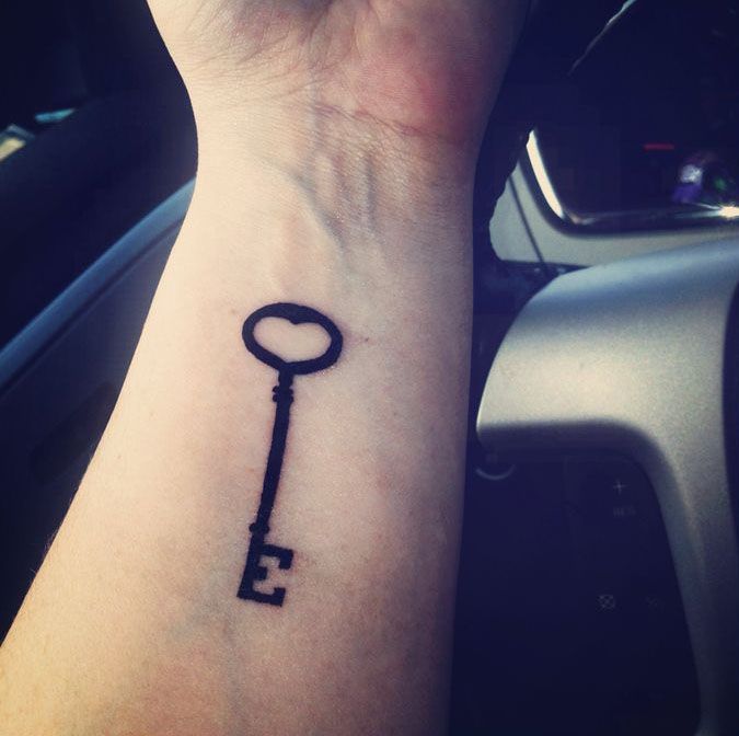 8. Simple Black Key Wrist Tattoo