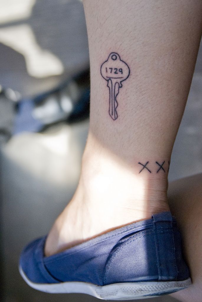 18. Tiny Numbered Key Ankle Tattoo