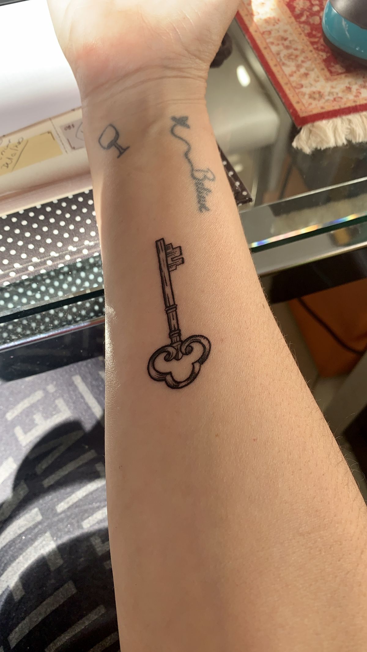 This tattoo is all grace. The key itself has that lovely old-world structure, but the fine vine details curling around the top and stem make it feel softer, almost storybook-like. It’s romantic without being sugary, detailed without feeling busy, and quietly elegant in a way that really lasts. There’s a subtle vintage quality to the design here, but the botanical additions keep it feeling fresh and a little more organic. If you’re the kind of person who wants a tattoo to feel like part symbol, part artwork, this one really delivers. It feels thoughtful, feminine, and just mysterious enough to keep it interesting every time you catch sight of it.