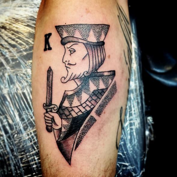 This design feels like it came straight out of an old deck of cards—detailed, classic, and full of character. The king figure holding a sword brings a sense of authority, but also a bit of old-school charm. It’s artistic, almost nostalgic.