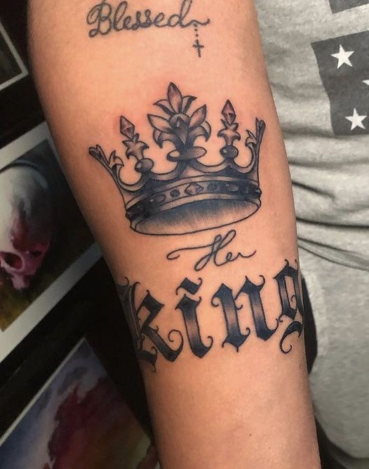 This tattoo works great for men who want something versatile and expressive. It fits naturally on the hand or wrist and pairs well with both casual and dressed-up looks. The script adds personality, while the crown keeps it rooted in classic king tattoo ideas that never go out of style.