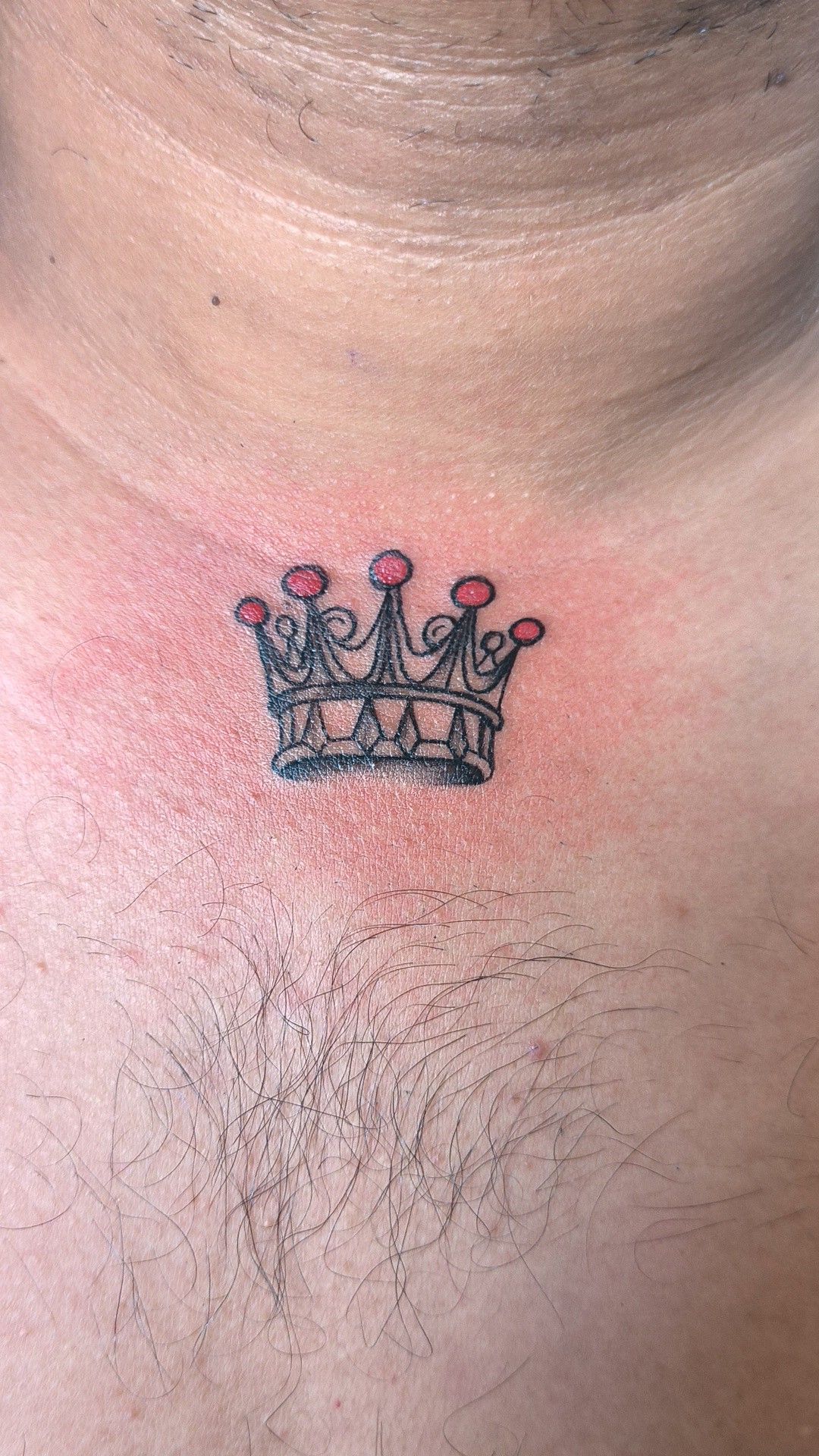 Sometimes, less really is more. This small crown centered on the chest feels clean, intentional, and quietly confident. It’s not trying to impress—it just does.