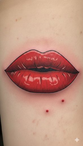 This glossy red lip tattoo feels luxurious, glamorous, and unapologetically bold—like a signature red lipstick that never goes out of style. It captures drama, elegance, and self-assured beauty in a single image.