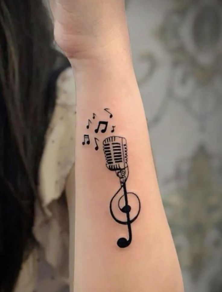15. Microphone and Music Note Arm Tattoo