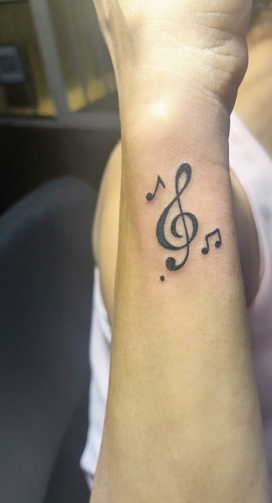 8. Classic Treble Clef Wrist Tattoo