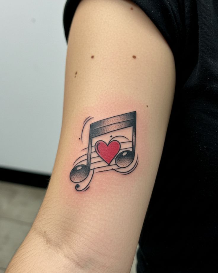9. Heart in the Note Bar Arm Tattoo