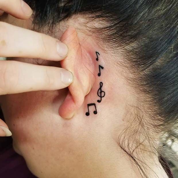 This is one of the best music note tattoo ideas for women’s behind-ear placement because the small scale suits the area beautifully. It works best if you want something Dainty, lightweight, and easy to hide with hair when needed. Since the skin here can be a little delicate, keep the design compact and avoid overcrowding the notes. Pair it with multiple Ear piercings, sleek hair, or a strong lip color, and the whole look gets instantly cooler. The vibe is playful, stylish, and confident without ever trying too hard, which is exactly the sweet spot.