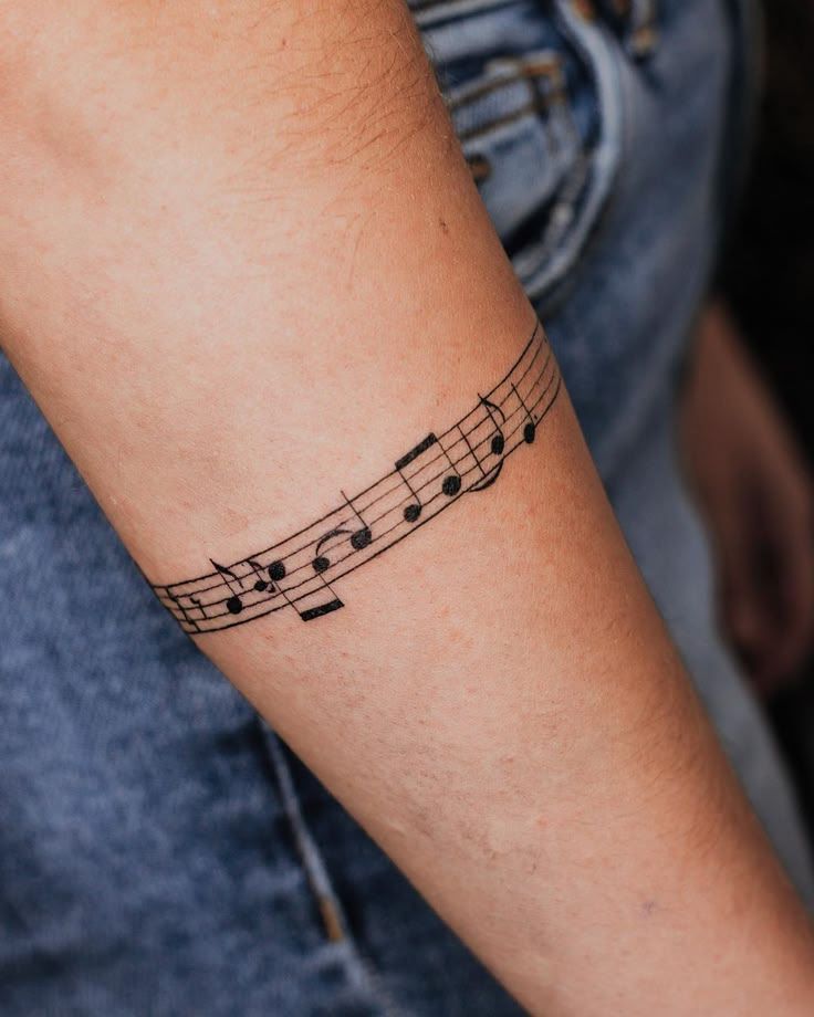 This tattoo feels graceful and grown-up, like a melody that has settled into your skin instead of shouting for attention. The line of the staff wrapping softly around the arm gives it a natural rhythm, and the notes create just enough visual movement to keep it interesting. It has a polished, almost jewelry-like quality, but with more personality. I love how this kind of tattoo feels artistic without needing extra decoration. It says you have a connection to music, but it does it in a way that feels refined, elegant, and quietly stylish rather than sentimental.