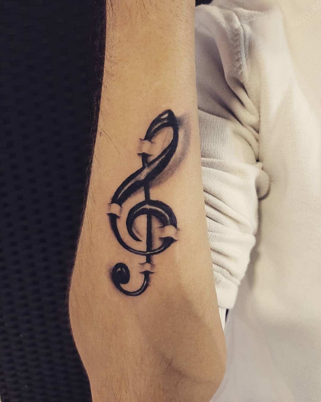 5. Bold Treble Clef Arm Tattoo