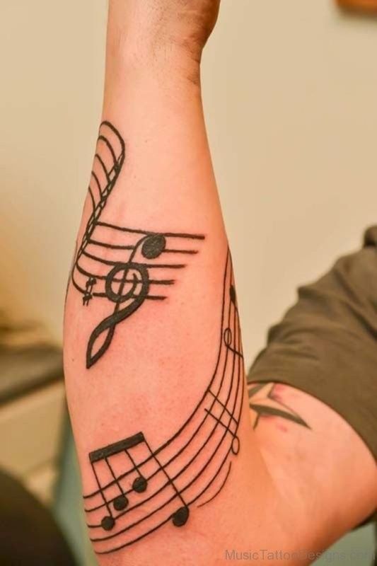 14. Flowing Music Staff Forearm Design
