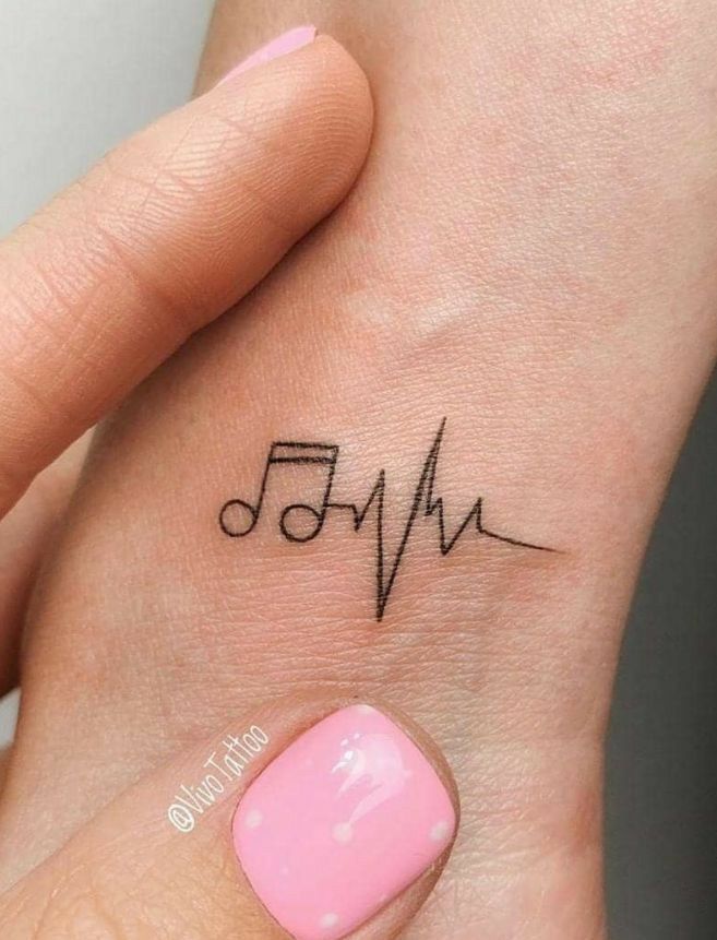 A pair of notes slips into an ECG spike, like proof your pulse perks up the second the chorus hits. It’s crisp, delicate, and kind of flirty—the bracelet-like moment that peeks out when you reach for a latte. If you love minimalist jewelry and playlists that move from high school throwbacks to metal when the treadmill inclines, this clean line says it all in a whisper. Unique, small, simple, and quietly confident. Styling tips or care: go extra-fine with a steadier middle line so the heart jump stays readable over time. SPF daily is non-negotiable on hands and ankles. Ask your artist to soften corners at the peaks to reduce blowout; a single pass keeps that light aesthetic. Pairs well with a tiny neck star or micro The ear note: for men on arm, extend the waveform toward the wrist for a sleeker runway.
