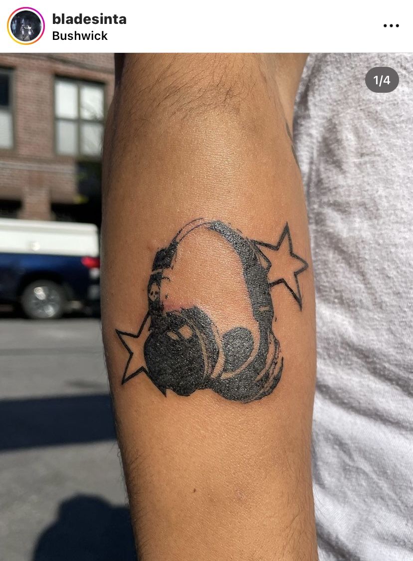 This bold headphone tattoo gives off the pure sound of movement—the energy of a commute turned private concert. The stars feel like little applause breaks, the way your favorite chorus lifts you up on a gray day. It’s graphic, a touch gritty, and totally wearable with a leather jacket or a soft tee. Think of it as your personal stage pass: a reminder that wherever you go, the playlist travels with you. The vibe lands between rock nostalgia and modern street aesthetic, a cool pick for designs for women who love a city beat. For whom it’s for: great for men on arm pieces, too, but it shines on the outer bicep where the curve frames the cups. Works on most skin types; choose crisp linework if you want minimalist contrast or light shading for depth. If you’re eyeing sleeves, this plays nicely with stars, lyrics, or designs men often pair with gear. Placement near The ear line on the upper arm gives it extra meaning without being literal.