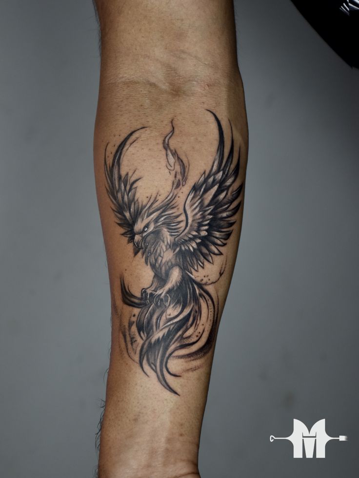 This phoenix has compact strength. It is not the biggest piece in the room, but it has presence — sharp wings, a focused gaze, and a smoky tail that gives it movement. The design feels grounded, masculine, and quietly symbolic, like a reminder that growth does not always need a grand announcement. Sometimes the most powerful tattoo is the one that feels like a private signal.