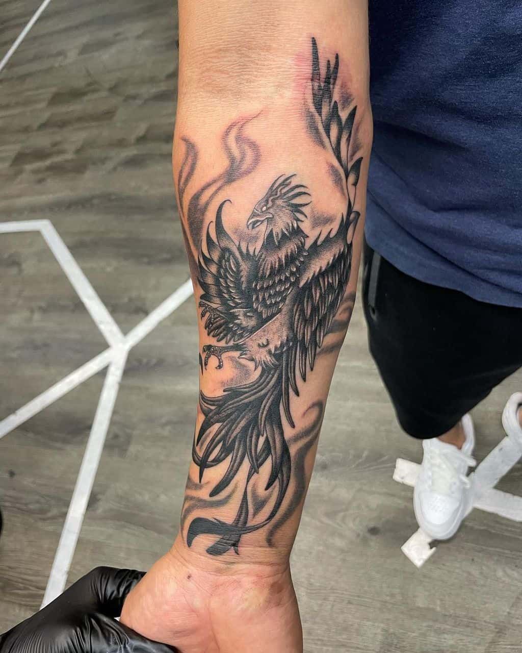 4. Dark Forearm Phoenix with Smoky Flames