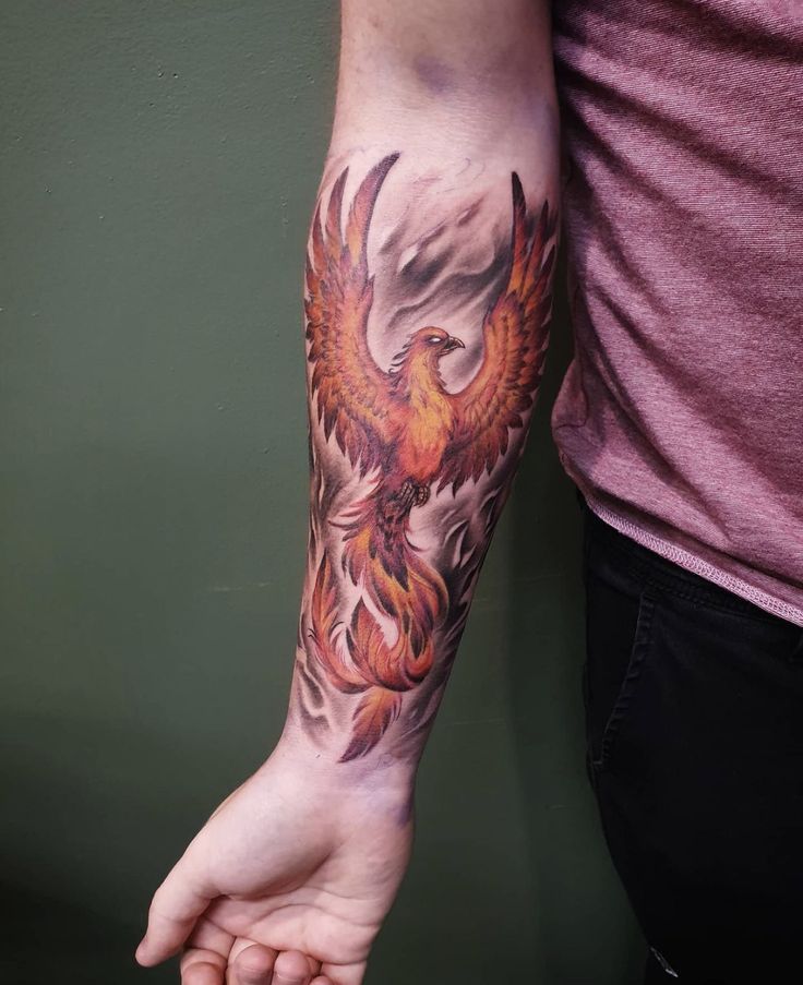 7. Fiery Color Phoenix Forearm Piece