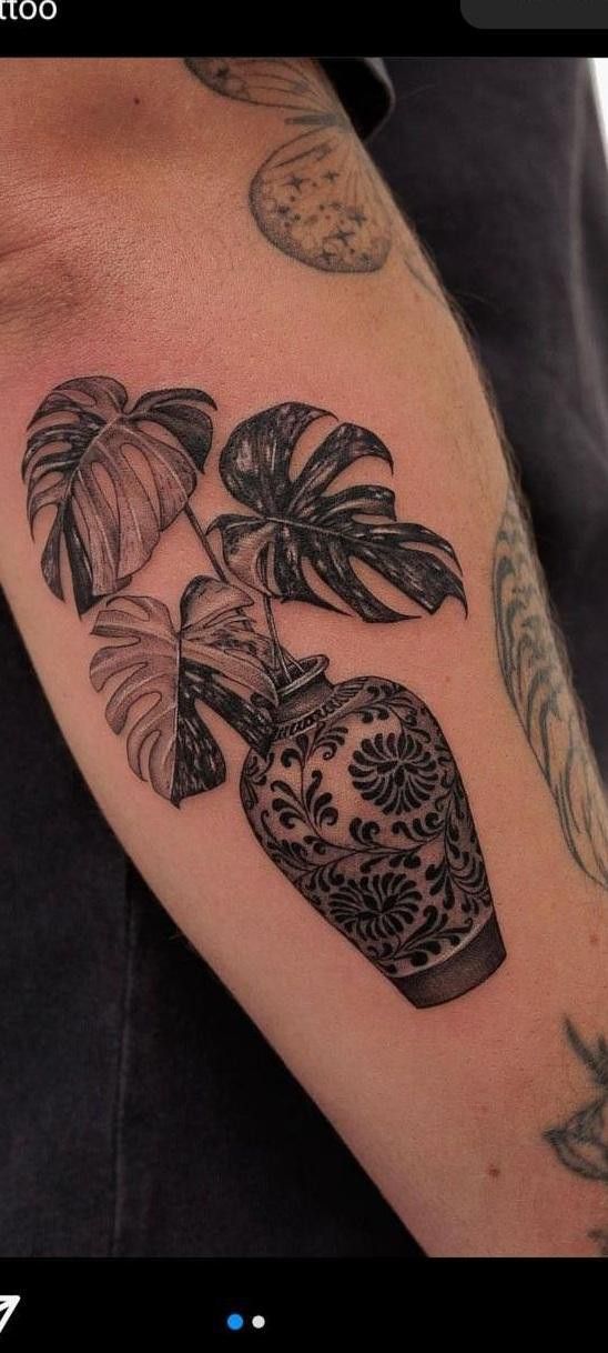 Styling tip: because the Potted details and dark shading are rich, keep aftercare extra consistent—thin layers of fragrance-free lotion, no heavy occlusion, and protect it from the sun like it’s your favorite white tee. This design works beautifully on the arm, where the vase can sit “upright,” and the Monstera leaves can fan out naturally. If you want it to stay readable long-term, ask for solid contrast in the pot pattern and clean negative space between leaves.