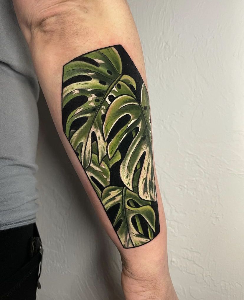 Motivation to try it now: if you’ve been daydreaming about a sleeve but you want it to feel sophisticated (not chaotic), a Monstera-forward design is such a smart move. The big leaf shapes stay readable, and the negative space keeps the whole arm from looking too dark. Ask for a flow that follows the forearm and elbow bend, and consider adding lighter shading in the background leaves so the main ones keep their spotlight.