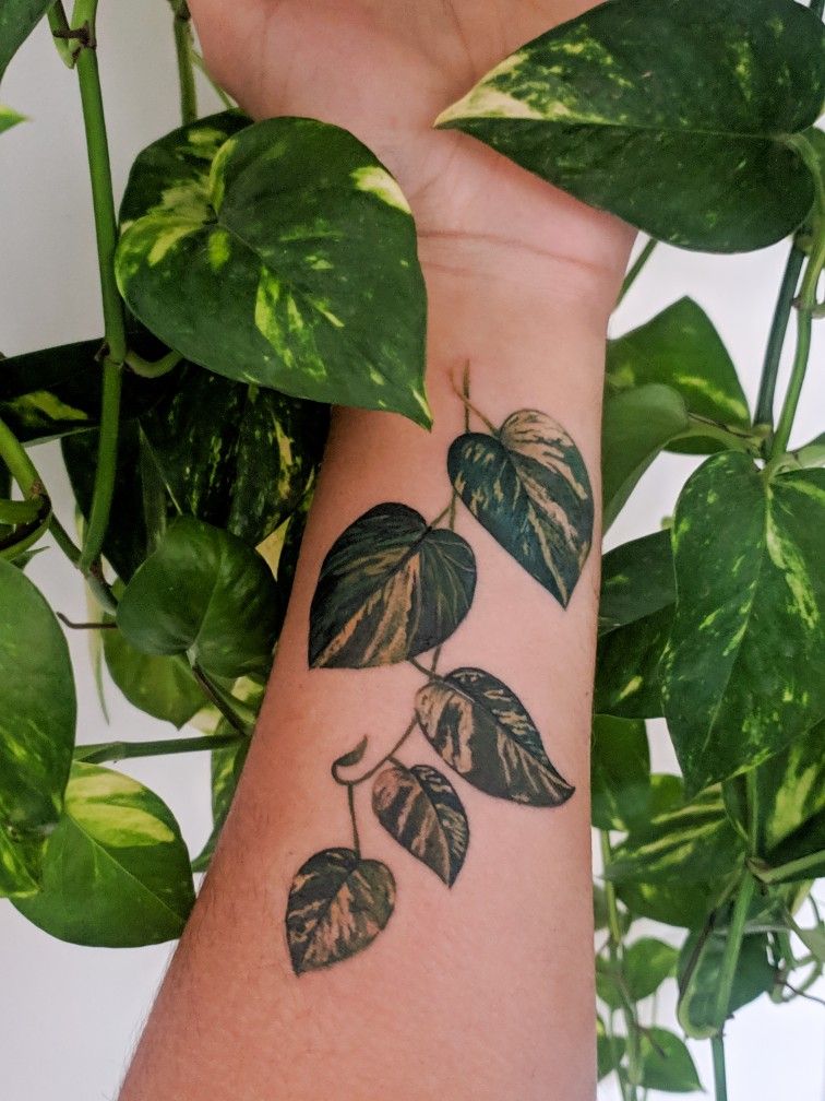 Low-maintenance angle: a Tiny wrist piece is easy to live with and easy to style around—bracelets, a watch, and even a delicate ring stack won’t fight it. Pothos is perfect here because the leaf shapes stay readable at a smaller scale, especially with bold fills and clear edges. Just remember wrists get sun and friction, so baby it during healing, and plan on regular SPF to keep the dark areas from softening too quickly.