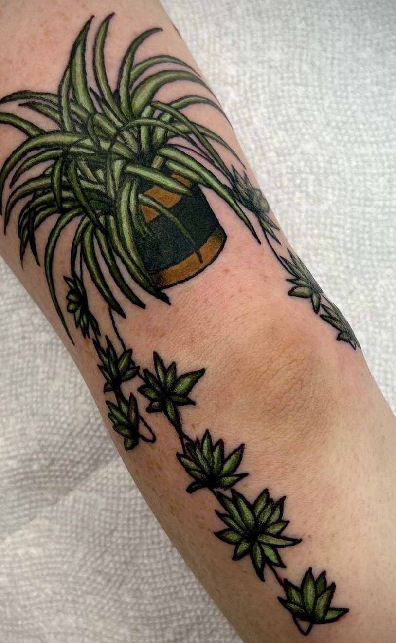 Styling tips: because there are multiple small leaves, keeping the outlines crisp is everything. Ask your artist for strong contrast and slightly simplified leaf shapes so the tiny details don’t fade into each other. This design sits great on the leg where there’s room for the pot and the trailing line, and it’s easy to expand later if you want a larger plant story. Treat it gently during healing—no tight clothing rubbing—and you’ll keep that fresh green look longer.