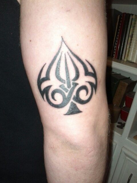 This tribal-style spade tattoo has a bold and confident personality that feels both classic and expressive. The sweeping curves give the symbol a sense of motion, turning a familiar shape into something more artistic and individual. It has that unmistakable presence that makes it instantly recognizable without needing extra detail.