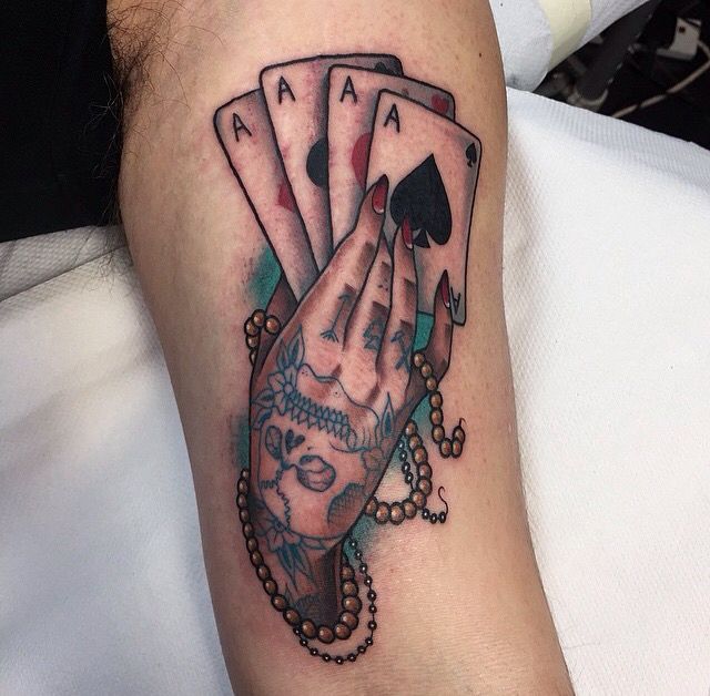 25. Tattooed Hand Holding Aces
