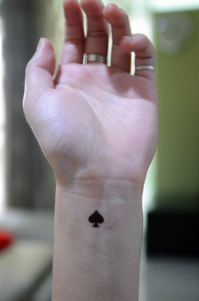 There’s something charming about a tiny spade on the wrist—it feels spontaneous and personal, like a small reminder you carry with you every day. The clean shape and simple fill make the symbol instantly recognizable while still feeling soft and approachable. It has that effortless coolness that never tries too hard.