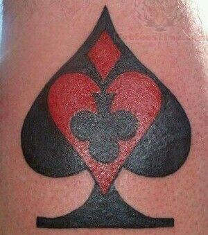 This striking spade tattoo blends multiple card suits into one powerful image, creating a design that feels fearless and unapologetic. The deep red center framed by Black edges gives it an almost emblem-like presence—the kind of tattoo that looks like it carries a story behind it. It feels strong and decisive, like a personal symbol of risk-taking and confidence.