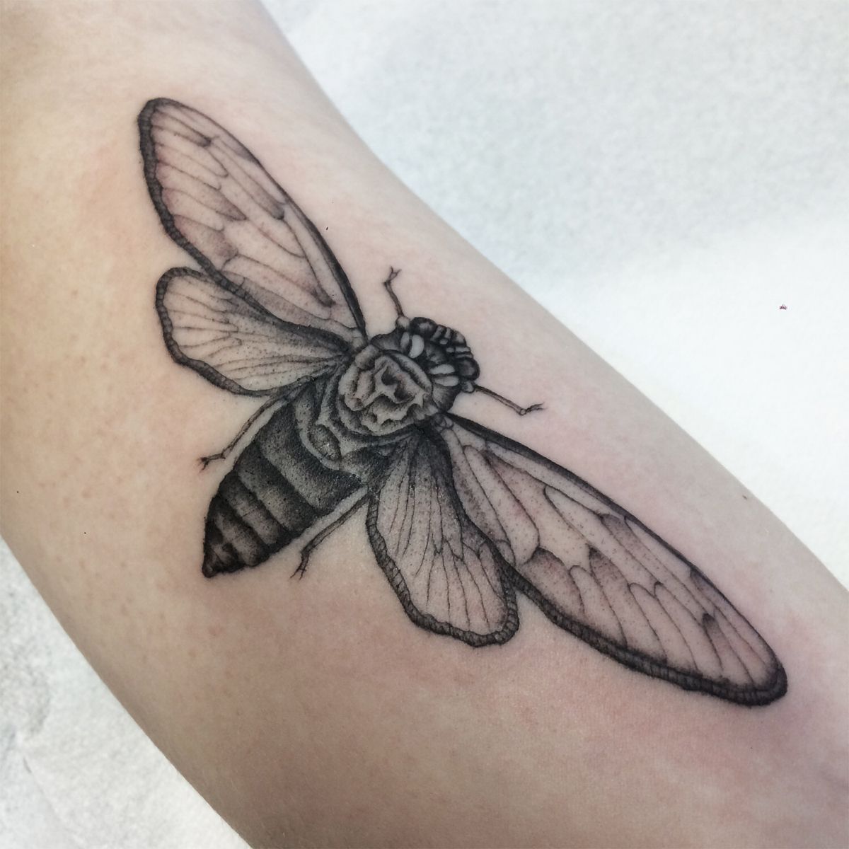 14. Blackwork Cicada Forearm