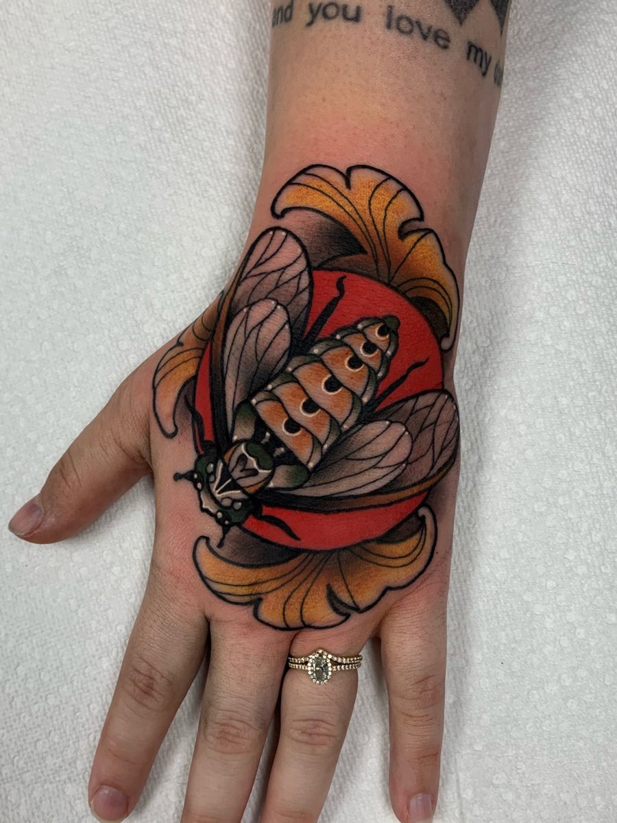 13. Neo Traditional Cicada on Hand