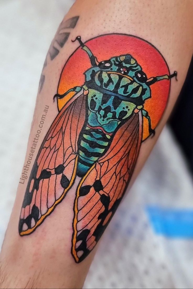 4. Neo Traditional Cicada in Vibrant Colors