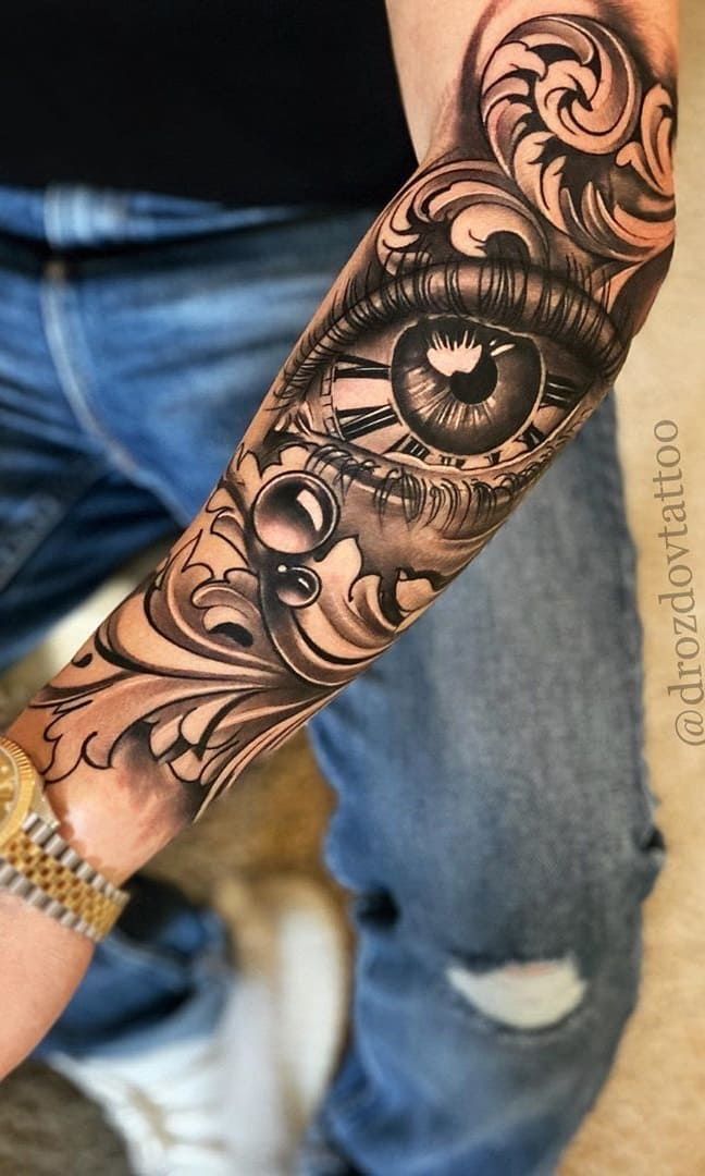 1. Filigree Eye and Clock Tattoo