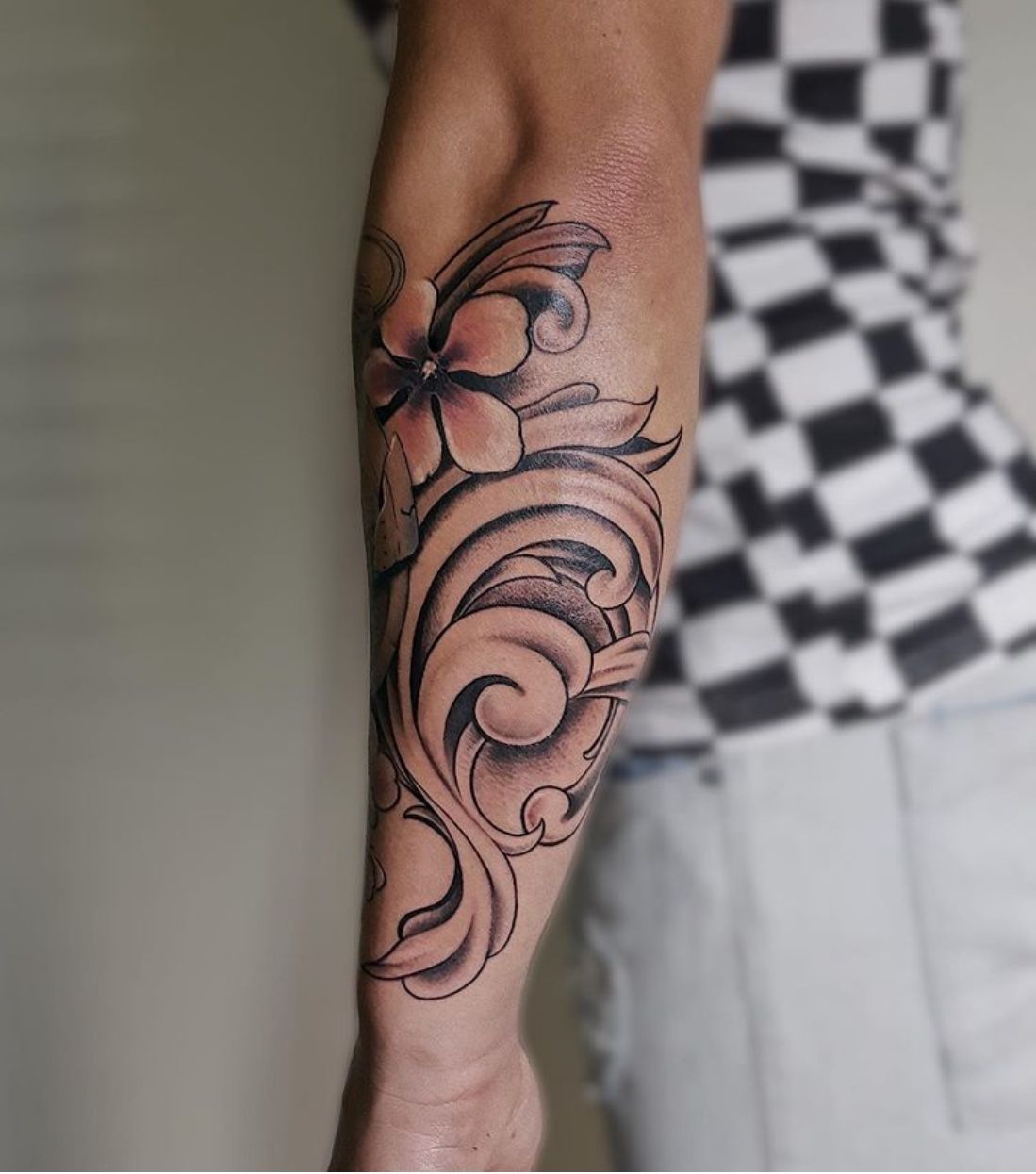 5. Black and Gray Filigree Forearm Tattoo