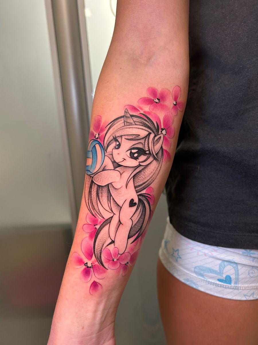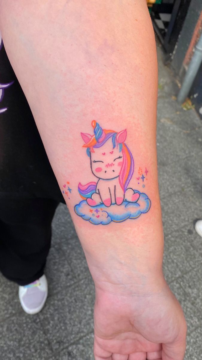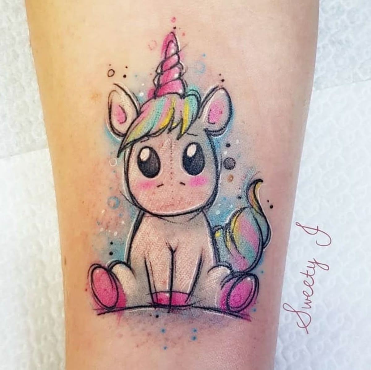 1. Pastel Baby Unicorn Cartoon Tattoo